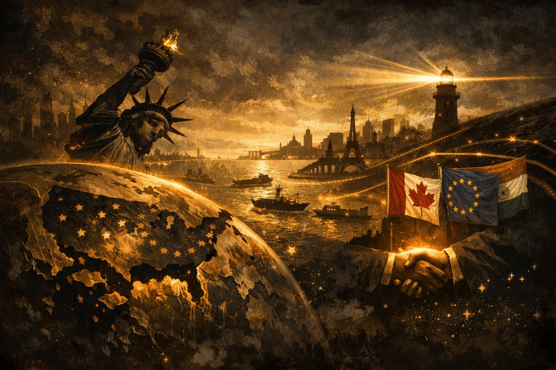 BOX DE FACTOS “Afundar” aqui não é economia: é influência, confiança e centralidade estratégica. Tarifas não são só números: são sinais políticos, e sinais criam rotas alternativas. Quando aliados procuram parcerias “para bem longe”, é o mercado a traduzir diplomacia em prudência. O poder geopolítico mede-se por gravidade: quem atrai define normas; quem repele cria vácuos. O “colapso” raramente acontece com estrondo: acontece por erosão lenta — a confiança sai sem bater a porta. O Afundar Geopolítico: Quando a América Perde Gravidade Sem Perder PIB Os impérios não caem, muitas vezes, por falta de pão — caem por falta de confiança. E a confiança tem um hábito cruel: quando começa…