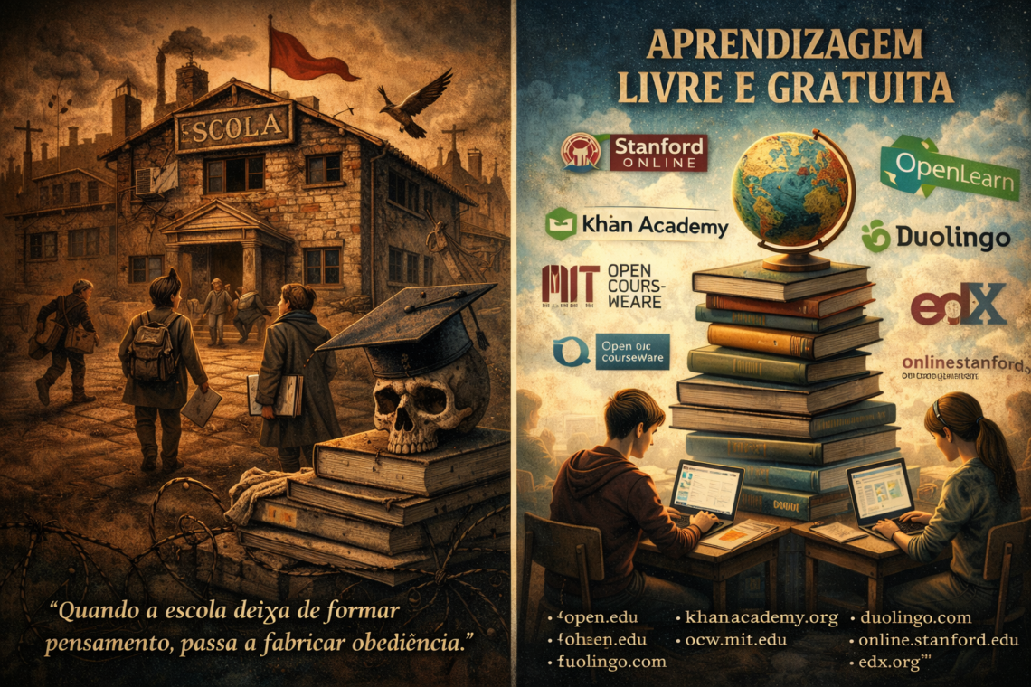 - Alternativa real: e-learning e recursos abertos com qualidade global — sem pedir licença ao conformismo.